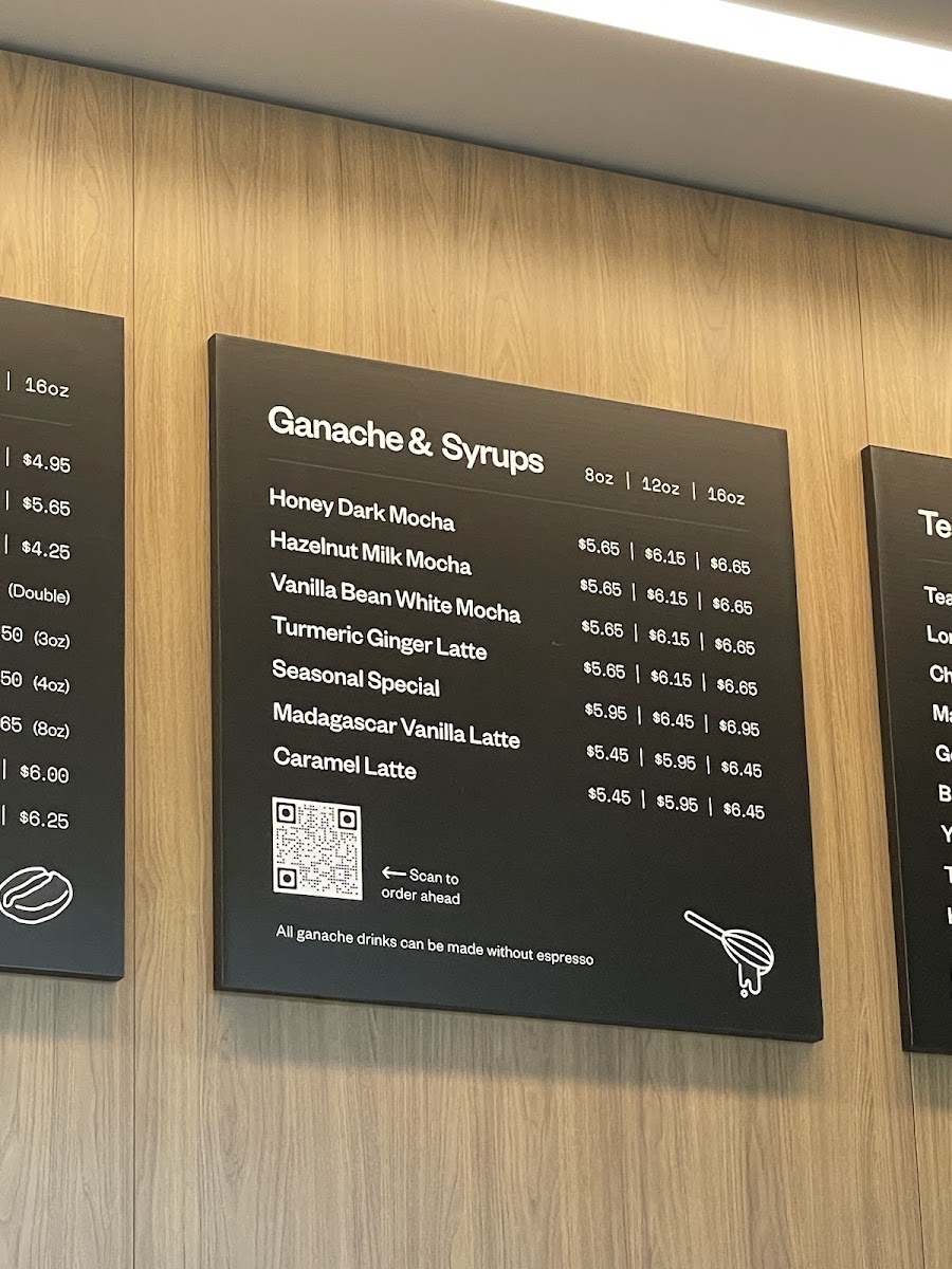 Ganache & Syrups: Featuring flavored mocha drinks and seasonal specials, this category includes options like Honey Dark Mocha, Hazelnut Milk Mocha, Vanilla Bean White Mocha, Turmeric Ginger Latte, Madagascar Vanilla Latte, and Caramel Latte. These drinks blend espresso with sweet and spicy syrups or ganaches.